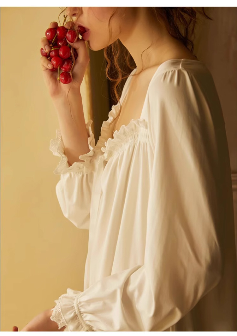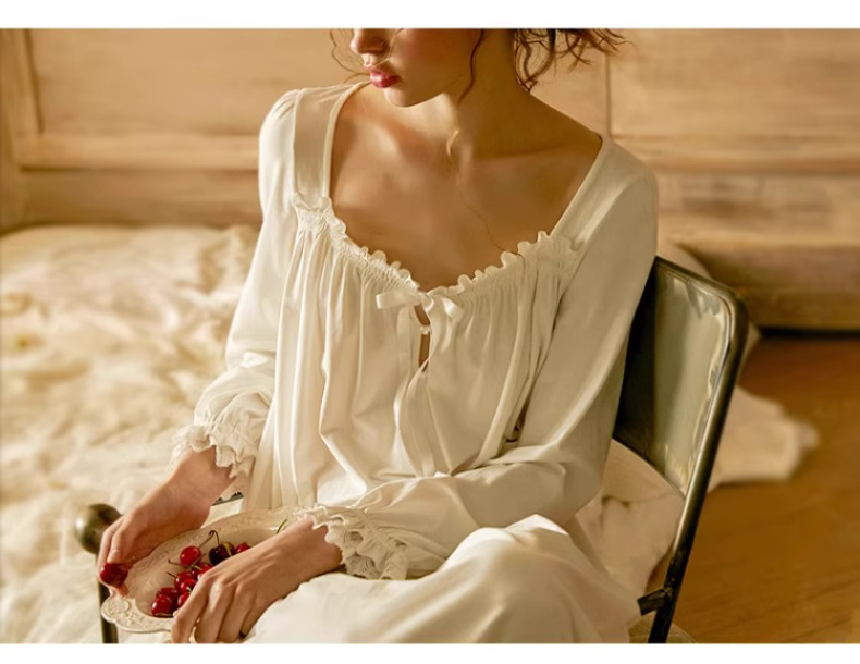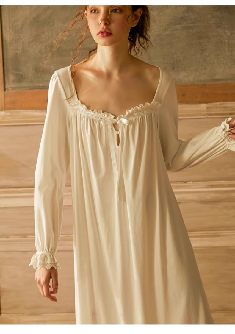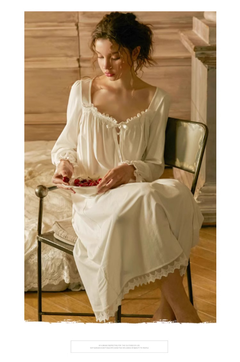 Embrace timeless elegance with this French princess cotton nightdress, designed with a romantic vintage aesthetic and everyday comfort in mind. Made from 100% breathable cotton, this mid-length lounge dress provides softness, airflow, and gentle comfort for all-day wear.