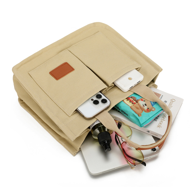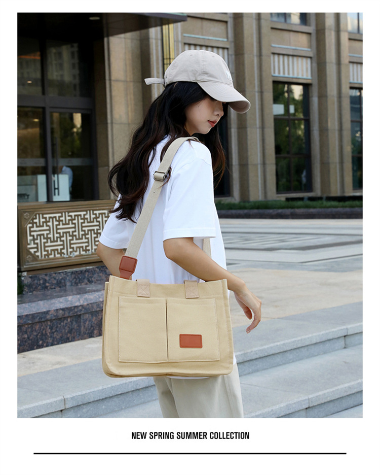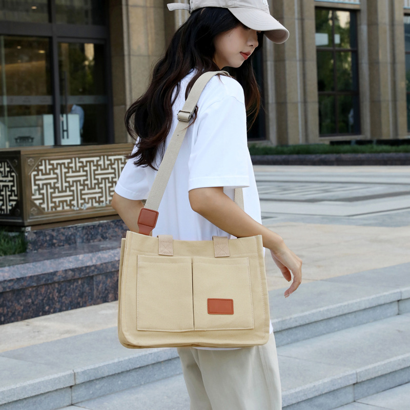 The horizontal square shape offers a structured yet stylish look, making it ideal for commuting, travel, shopping, or casual outings. The spacious interior includes multiple compartments such as a zippered hidden pocket, laminated zipper compartment, and inner patch pocket, allowing for organized storage of essentials like phone, wallet, cosmetics, and small accessories.